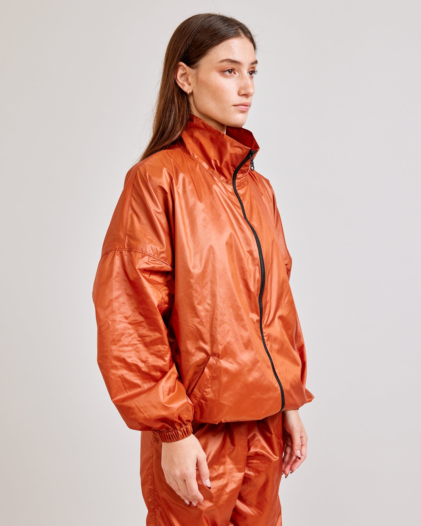 ג׳קט נייילון גלוסי מבית ראיו בצבע חמרה. גזרת אוברסייז בסטייל על זמני עם רקמת לוגו ראיו בחזית. לג׳קט בטנת רשת, סגירת רוכסן וכיסים בצדדים